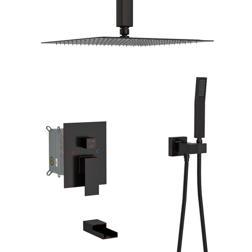 View full detailsShower System With Waterfall Tub Spout And 16" Ceiling Mount Square Rain Shower - Oil-Rubbed Bronze