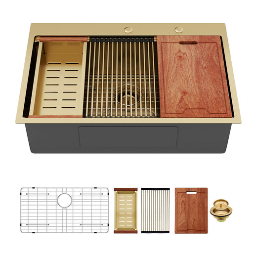 View full detailsDouble Bowl Farmhouse Sink Workstation 33" Stainless Steel 16 Gauge Apron Front - Black / Gray