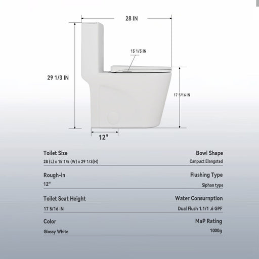 View full detailsUpgraded Design Armrest, With Glossy Gw 007 1 Piece Toilet With Tornado Flush, Soft Close Seat, Dual Flush Map 1000G, Comfort Chair Seat - Gloss White