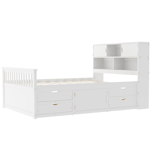 View full detailsCaptain Platform Bed Frame With Bookcase Headboard, 4 Drawers, Storage Shelves