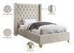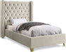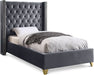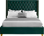 Elegant and eye-catching, the stunning Barolo Bed from Meridian Furniture is the perfect addition to any bedroom. velvet covers the deep tufted design. Strength and beauty is guaranteed with a solid wood frame and stainless steel legs.