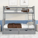 Twin Over Full Bunk Bed With Ladders And Two Storage Drawers - Gray