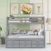 Twin Over Full Bunk Bed With Twin Size Trundle, With Drawers For Bedroom - Gray