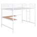 This full-size metal loft bed with a desk is made from sturdy metal and features a clean-cut silhouette that can be matched with any room decor. Designed with safety in mind, this loft bed includes a ladder integrated into the frame, making it easy to climb up and down. It also features full-length guardrails to ensure your child sleeps safely at night, as well as 20 secured heavy-duty metal slats and a support bar that provide ample support, stability, and air circulation for the mattress (no foundation or box spring needed). With this collection, you can transform any space into a workstation, a reading nook, or a craft area.