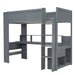 Full Size Gaming Loft Bed With Desk, Multi Storage Shelves, LED And Charging Station - Dark Gray