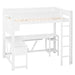 Full Size Gaming Loft Bed With Desk, Storage Shelves, LED And Charging Station - White