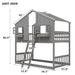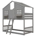 Twin Over Twin House Bunk Bed With Roof, Window, Window Box, Door, With Safety Guardrails And Ladder - Gray