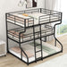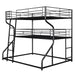 Industrial Style Triple Bunk Bed With Full Long, Twin Long, Queen Configuration And Dual Ladders Frame, Space Saving Design - Black