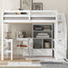 Full Size Loft Bed With L-Shaped Desk, Drawers, Cabinet, And Storage Staircase - White