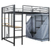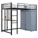 Full Size Loft Bed With Desk, Shelves, Power Outlet, LED Light And Wardrobe - Black