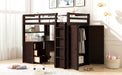 Full Size Loft Bed With Drawers, Desk, And Wardrobe - Espresso