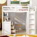 Full Size Loft Bed With Drawers, Desk, And Wardrobe - White
