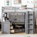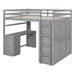Full Size Loft Bed With Drawers, Desk, And Wardrobe - Gray