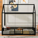 Twin Size Metal House Bed With Fence And Door - Black