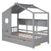 Twin Size House Bed With 2 Drawers, Kids Bed With Storage Shelf - Gray
