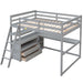 Full Size Loft Bed With Built In Desk, Shelves, And 2 Drawers - Gray