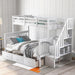 Twin Over Full Stairway Bunk Bed With Drawer, Storage And Guard Rail For Bedroom - White