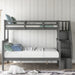 Stairway Twin Over Twin Bunk Bed With Storage And Guard Rail For Bedroom - Gray