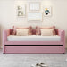 Twin Size Upholstered Daybed With Ergonomic Design Backrest And Trundle - Pink