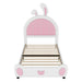 Twin Size Upholstered Platform Bed With Rabbit Shaped Headboard - White / Pink