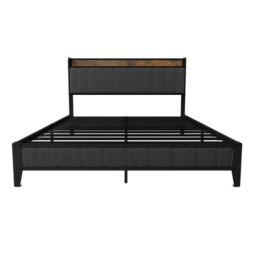 View full detailsBed With Charging Station, American Design Upholstered Headboard, Metal Platform