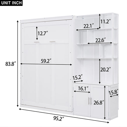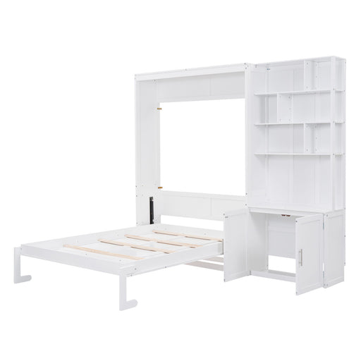 View full detailsFull Size Murphy Bed With Multiple Storage Shelves And A Cabinet - White
