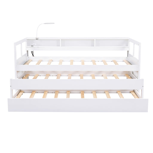 View full detailsDaybed With 2 Trundles, 3 Storage Cubbies, Built In USB Charging Light