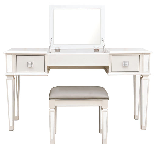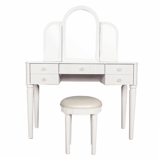 View full detailsCompact 3 In 1 Vanity Desk With Open Top Mirror, Glass Desktop, 5 Height - White