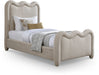 The regal Gavin beige chenille fabric bed is a luxurious yet comfortable addition to any bedroom. Using a soft, textured finish that complements both modern and traditional decor, it is a stylish yet comfortable addition for a variety of interiors. Its clean lines and elegant design are highlighted by a sturdy frame, ensuring durability and support for a restful night's sleep.