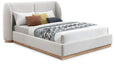 Add showstopping appeal to your bedroom sanctuary with this Jardin boucle fabric bed. Cream boucle fabric covers this bed's headboard and side rails, adding soft, sumptuous appeal to its allover aesthetic. The winged headboard is softly padded for comfort against your back and neck while you lounge around, reading or watching television. A natura oak finish on the solid wood base adds a distinctly sophisticated finish. Use this art-deco style bed with just a mattress if desired; box springs are not necessary.