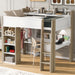 Full Size Loft Bed With Built In Storage Shelves, Clothes Rail, And Desk - White / Natural