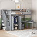 Full Size Loft Bed With Stairs, Bookshelf, Drawers, Desk & Wardrobe, Space Saving Multifunctional Furniture - Gray