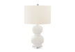 - Stylish Design: Contemporary 25"H cream ceramic table lamp with a double gourd shape on an acrylic crystal-like base, topped with a chic drum ivory shade.