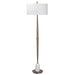 Transitional In Design, This Floor Lamp Has A Tapered Base Finished In A Plated Antique Brass, Accented With A Polished White Marble Detail. The Piece Has A White Linen Hardback Drum Shade.