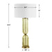 This Tall, Elegant Lamp Truly Makes A Statement! The Transparent Olive Glass Is Adorned With Slim Vertical Fluting That Catches The Light On Every Curve, Paired With Brass-plated Details. A Round Hardback Drum Shade Made With A Crisp White Linen Fabric Completes The Piece.
