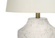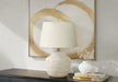 - Modern Style: Features a 20" table lamp with a classic urn-shaped base and a ridged cream concrete textured finish, topped with an ivory linen tapered drum shade and a gold finial.