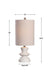 A Nod To Classic Mid-century Styling, This Buffet Lamp Has A Geometric Shaped Base With A Bleached Wood Tone Look, Accented By Brushed Nickel Plated Details. A Light Beige Fabric Shade Accents The Piece.