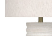• Stylish Design: This 28" cylinder-shaped table lamp features a cream resin base with a ridged design and an ivory linen fabric drum shade, topped with a chic gold finial, making it a fashionable addition to any room.