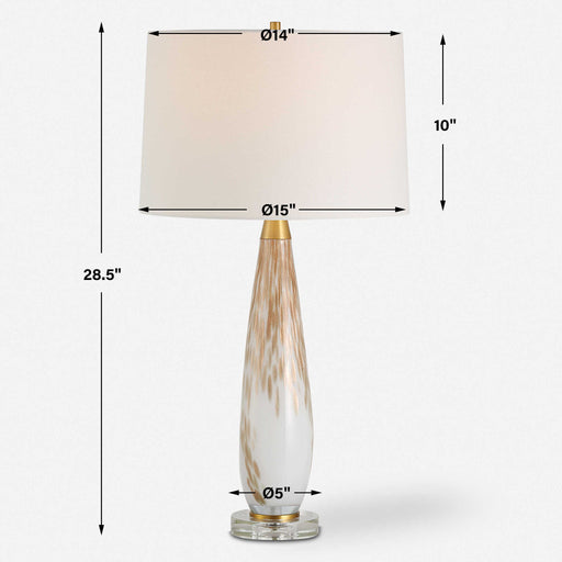 This Sleek And Slender Glass Base Features A Brilliant White Background With Spotted Metallic Gold Detailing Displayed On A Thick Crystal Foot And ...