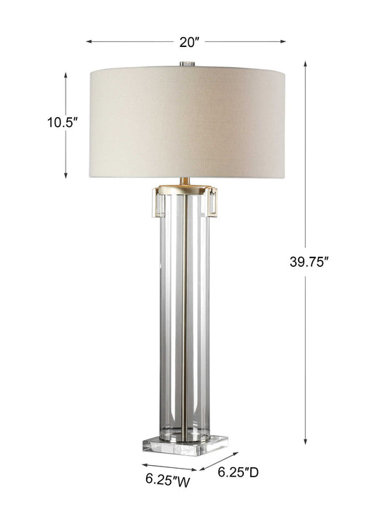 This Substantial Lamp Features A Clear Acrylic Tall Cylinder, Accented With Light Champagne-nickel Plated Details And A Thick Crystal Foot. The Rou...