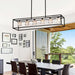6 Light Farmhouse Chandelier, Modern Industrial Linear Rectangular Crystal Pendant Light Cage Chandelier For Dining Room, Kitchen Island, Bar, Long Table, G9*6 Bulbs Included - Matte Black