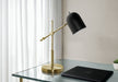 - Stylish Design: Contemporary table lamp with sleek brass metal base and chic black shade, ideal for modern décor.