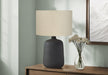 - Stylish Design: The lamp boasts a vase-like shape crafted from textured black ceramic, paired with a beige linen drum shade and topped with a silver finial, adding a touch of sophistication to any contemporary decor.