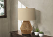 - Stylish Design: This boho-inspired table lamp features an open textured base made from natural brown linen rope, complemented by a contrasting beige linen drum shade, and a wood finial for a warm and inviting ambiance.