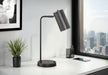- Modern Design: Mid-century inspired accent table lamp with a grey metal base and adjustable grey shade.