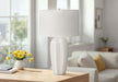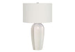 - Art-Deco Design: This 27" table lamp features a cream ceramic tapered vase base with an ivory linen drum shade and a silver finial, adding modern, fashionable style to any room.