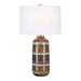 Natural Clay, Taupe, White, And Charcoal Tones Work Together To Create A Unique Artisan-crafted Look For This Table Lamp. The Ceramic Base Is Accented By Antique Brass Finished Details. The Hardback Drum Shade Is Covered In A White Linen Fabric. Glaze Colors And Designs May Vary Slightly Adding To The Authenticity And Character Of The Piece.