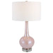 Elegant And Sophisticated, The Rosa Table Lamp Showcases A Light Blush Pink Glass Base With Brushed Nickel And Crystal Details. The Hardback Drum Shade Is Covered In A White Cotton Fabric.