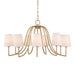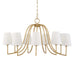 Elegant 9 Lt Chandelier Featuring A Heavy Textured Golden Finish With White Linen Fabric Shades. 9-40 Watt Max Candelabra Sockets. Bulbs Not Included. Supplied With 20' Wire, 7' Decorative Link Chain For Adjustable Installation.