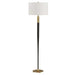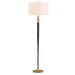The Stowe Floor Lamp Features A Tapered Metal Stem Finished In A Sleek Satin Black, Accented With Brass Plated Details. The Round Hardback Drum Shade Is Covered In A Crisp White Linen Fabric.